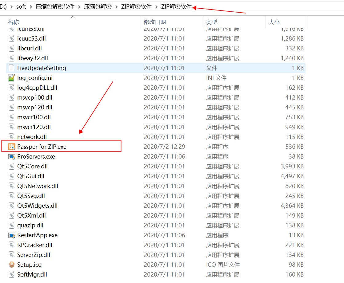 • 双击打开文件夹,双击打开图中的Passper for ZIP.exe (ZIP破解软件的启动)