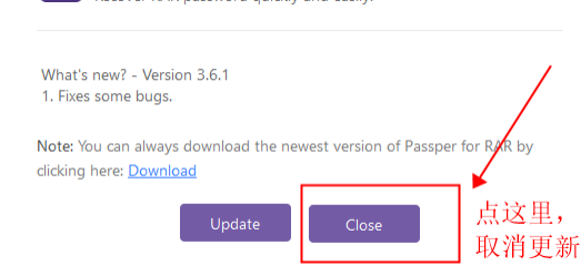 2、若弹出更新窗口,点击取消更新(不要更新软件,更新软件导致需要付费和无法使用。若不小心点了更新(update),需要重新下载安装)