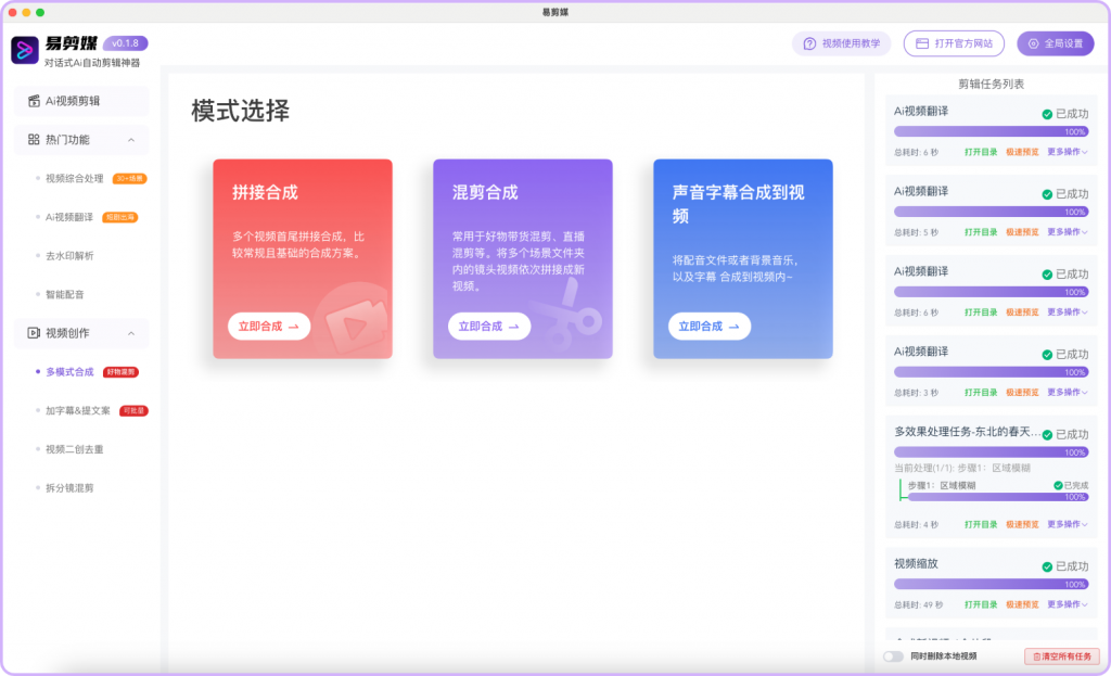 Ai自动剪辑神器!基于deepseek对话式处理视频,免费无广告,可批量处理、Ai视频剪辑、二创去重、分镜混剪