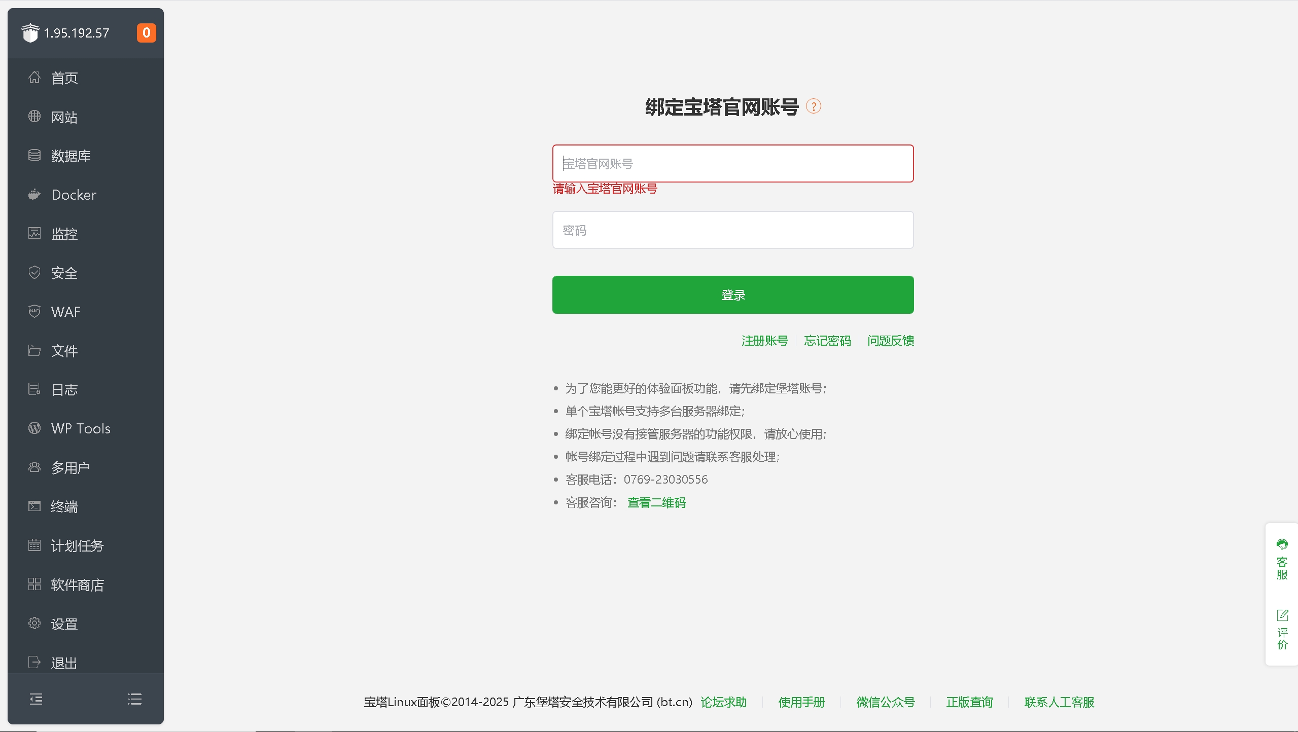 四、进入服务器控制面板并安装宝塔面板