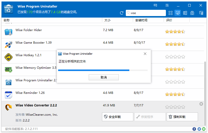 1、打开 Wise Program Uninstaller,加载你的电脑中已安装的所有程序